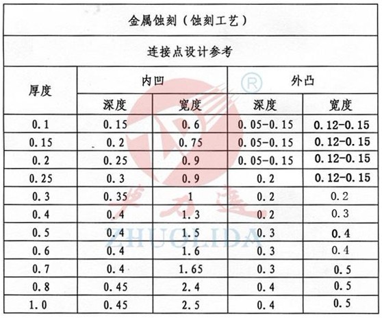 內凹試連接點設計主要是應用于功能性產品,毛刺凹于產品的邊緣,不影響產品的功能。材料的厚度不同連接點的大小也不同,材料越薄,金屬蝕刻連接點越小,材料越厚,蝕刻連接點越大!厚度在0.2mm以下的,,內凹的寬度在0.5mm,內凹的深度在0.15mm內! 一般產品都會選擇這種內凹的方式, 部分客戶還會對連接點的大小有相關要求!