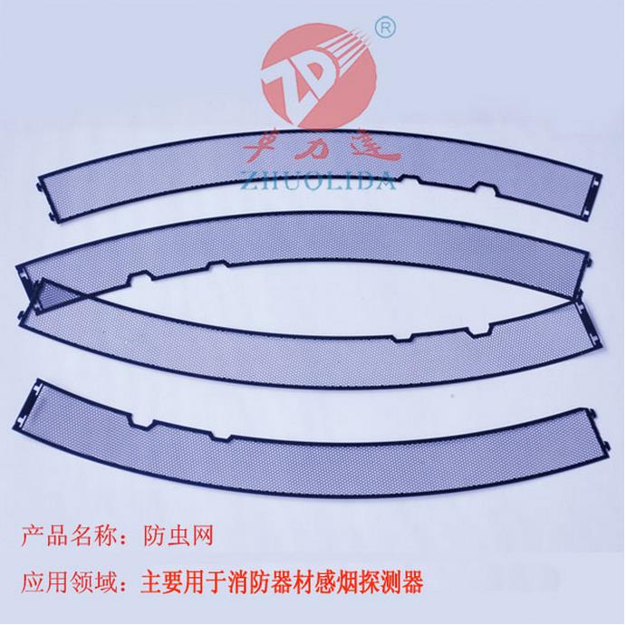 感煙器防蟲網的作用顧名思義就是防止昆蟲爬進去搗亂引起誤報,從而引發人群混亂,造成踩踏事故。所以,感煙器防蟲網的設計也是非常重要的,網眼不能大于1mm,屬于高精密配件。